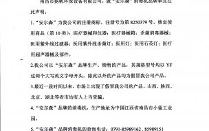 致廣大消費者: 南昌市揚帆環(huán)保設(shè)備有限公司,就“安爾森”消毒機品牌事宜在此聲明